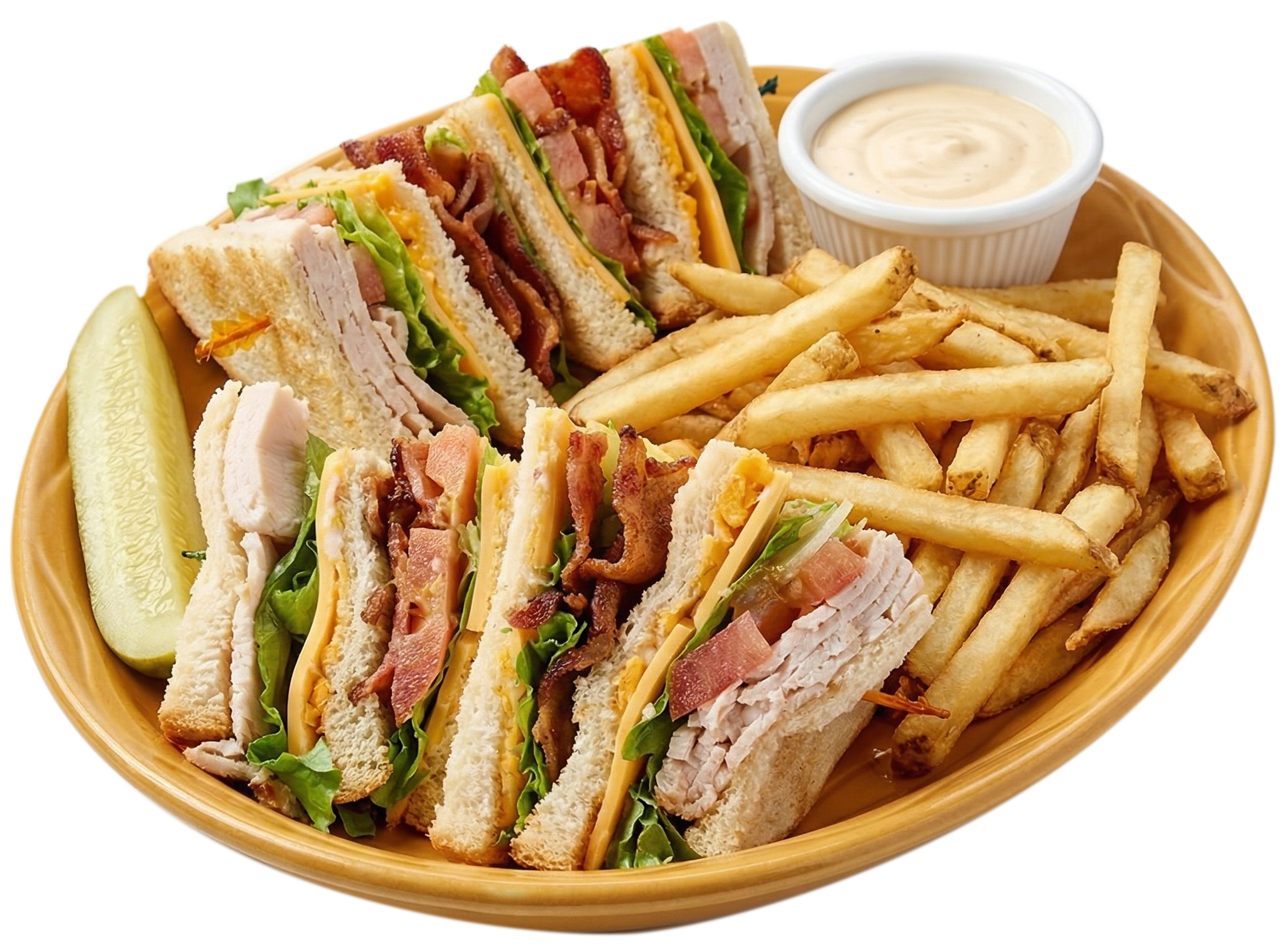 Mayo, lettuce, tomatoes, applewood smoked bacon, turkey, and cheddar cheese.